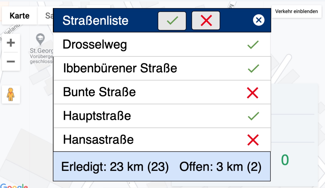 Zawsze mieć pogląd i oszczędzać na przejechanych kilometrach? Teraz to bardzo proste. Dzięki zintegrowanej liście ulic zawsze wiesz, które ulice zostały już oczyszczone, a które nie. Czerwone znaczniki wskazują ulice, które nadal wymagają oczyszczenia. Pozwala to uniknąć irytujących podwójnych przejazdów i zaoszczędzić kilometry. W pełni oczyszczone drogi poprawiają jakość i zapewniają mniej skarg od mieszkańców.