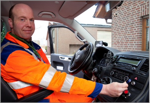 Nadajniki GPS zostały zainstalowane w pojazdach w celu rejestrowania czasu pracy. Czujniki kluczy pracowników są do nich podłączone. Aby zarejestrować czas pracy, pracownik musi po prostu przyłożyć kluczyk do czujnika, co zostanie zasygnalizowane dźwiękiem. Następnie urządzenie GPS w pojeździe przesyła czas, lokalizację, plac budowy i osobę do serwera geoCapture i blue:solution w czasie rzeczywistym. To takie proste!